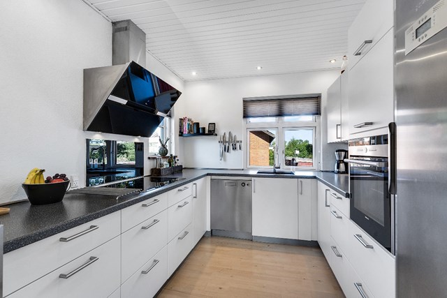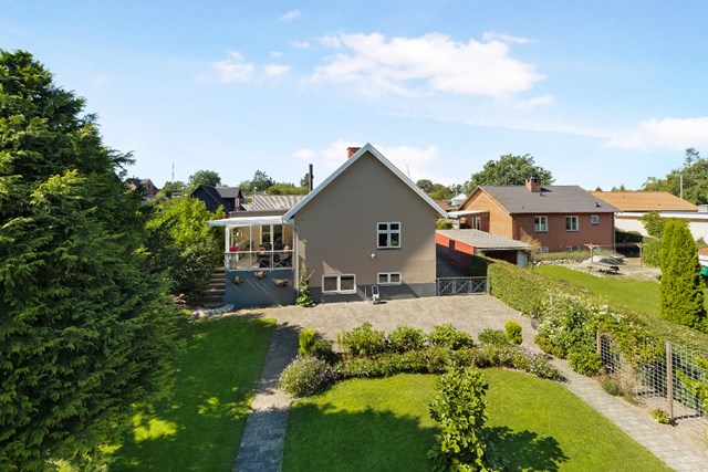 Foruden selve boligen venter der et stort skur samt en lukket og solrig have med flere solrige terrasser samt grøn beplantning, der holder sig fin året rundt.