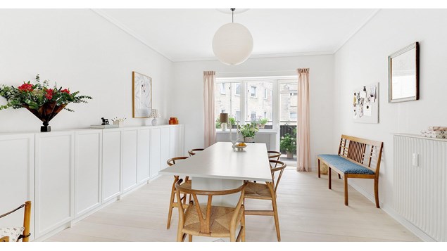 Moderne, lys og stilren. Sådan lyder nøgleordene for lejligheden, der fordeler sig over 149 flotte m2. Lejligheden har meget at byde på, men særligt den fantastisk udsigt sætter prikken over i'et