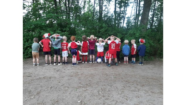 "Fodboldfeberen kan virkelig mærkes her i vores børnehus. Det har givet en helt ny dimension til sammenholdet, end den vi er vant til her i børnehaveregi. Børnene føler de er en del af noget større, fordi det ikke kun er noget, der foregår i nærmiljøet, men i hele nationen - og det er med til at skubbe positivt til den store begejstring og nysgerrighed hos børnene," fortæller Maria Leicht, pædagogisk leder i Børnehuset Overvænget.